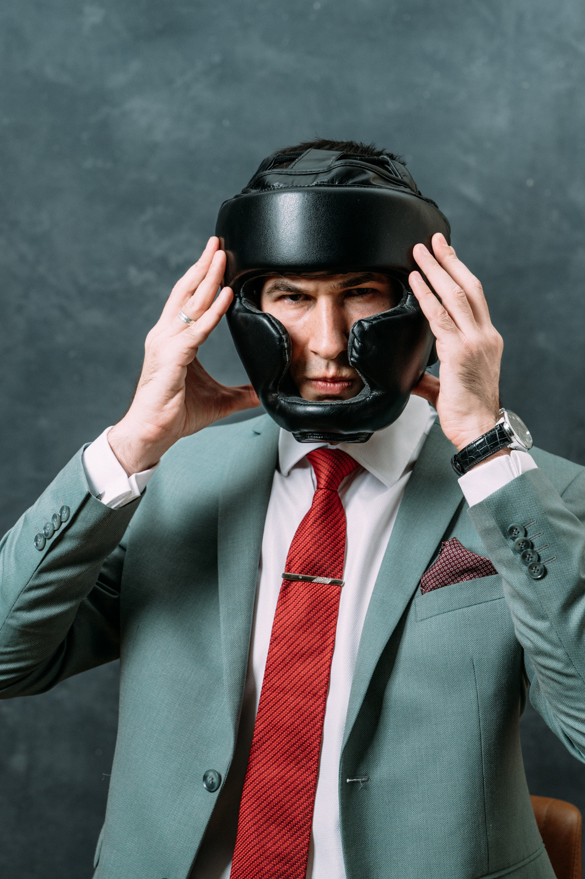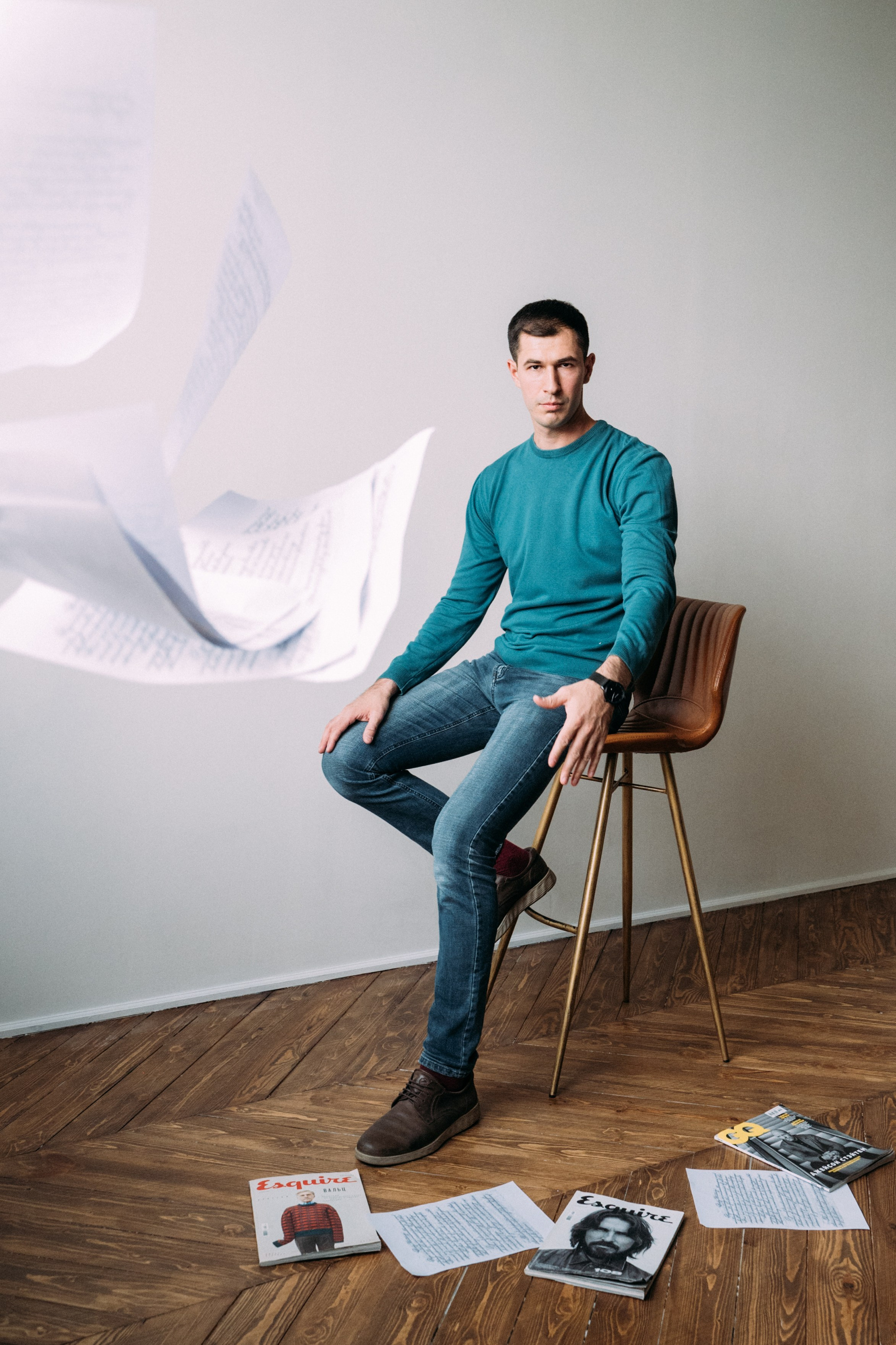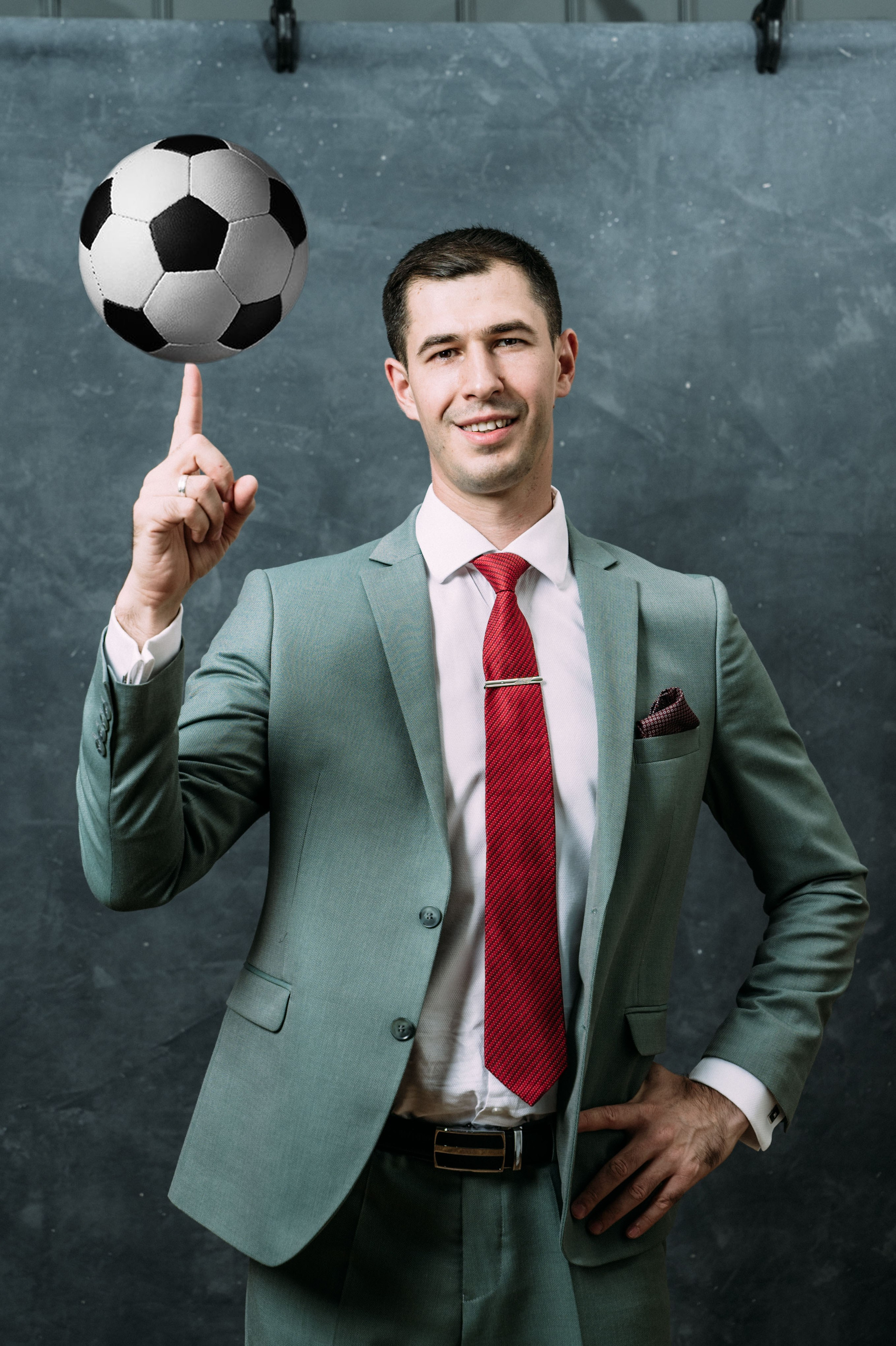 Так как Адиль является спортивным комментатором, в одном из образов мы решили применить спортивный реквизит, чтобы подчеркнуть эту часть его деятельности.